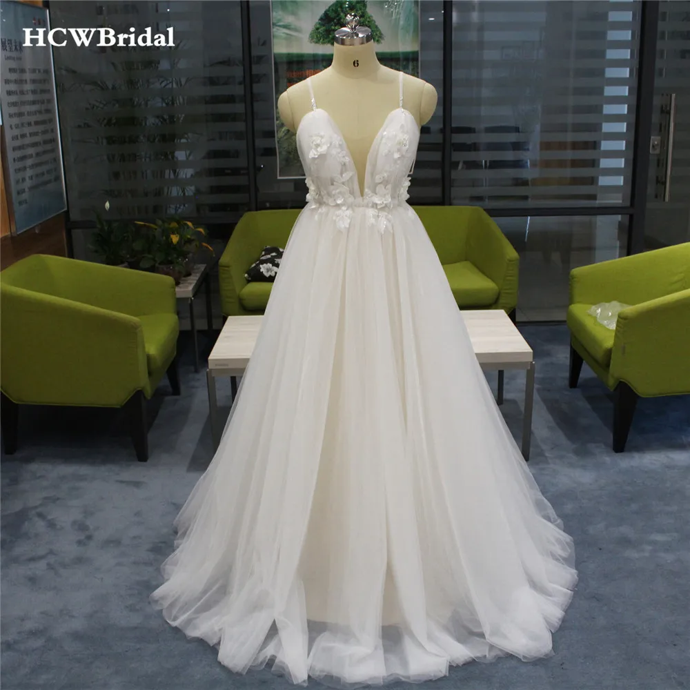 Sexy Backless Wedding Dress 2019 New Sweetheart Spaghetti Strap A Line Flowers Tulle Long Bridal