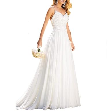 Beach Wedding Dresses For Bride 2019 Vintage Simple Aline White Lace Wedding Dress For Women Plus Size Backless Boho Summer Wedding Dresses Off White