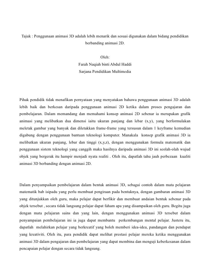 Animasi 3 D Lebih Baik Digunakan Dalam Penglibatan Pendidikan