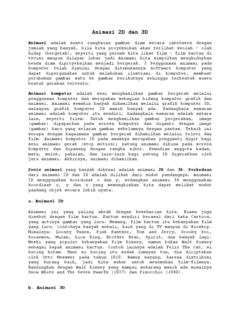 Pengertian Animasi 2d Dan Animasi 3d